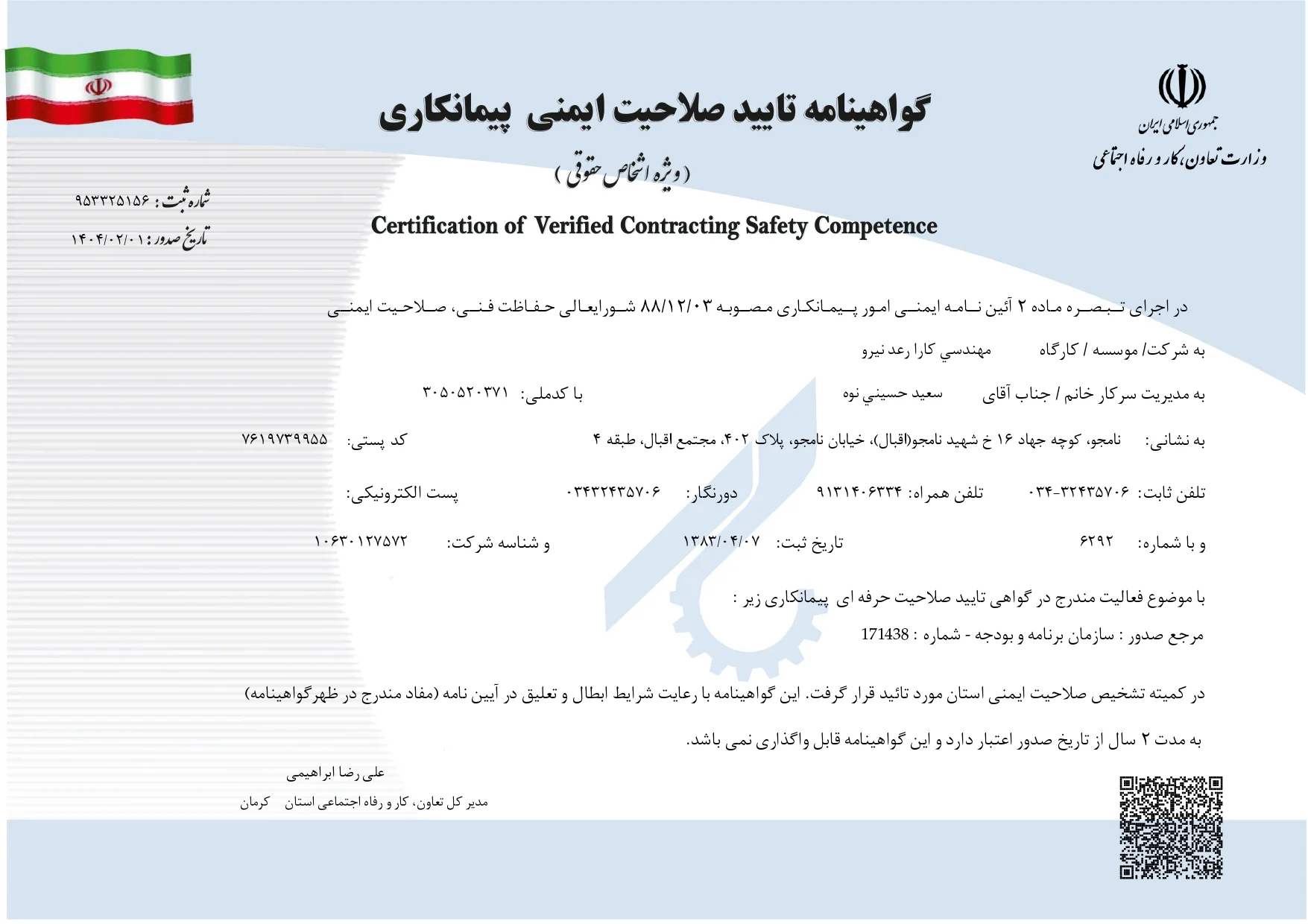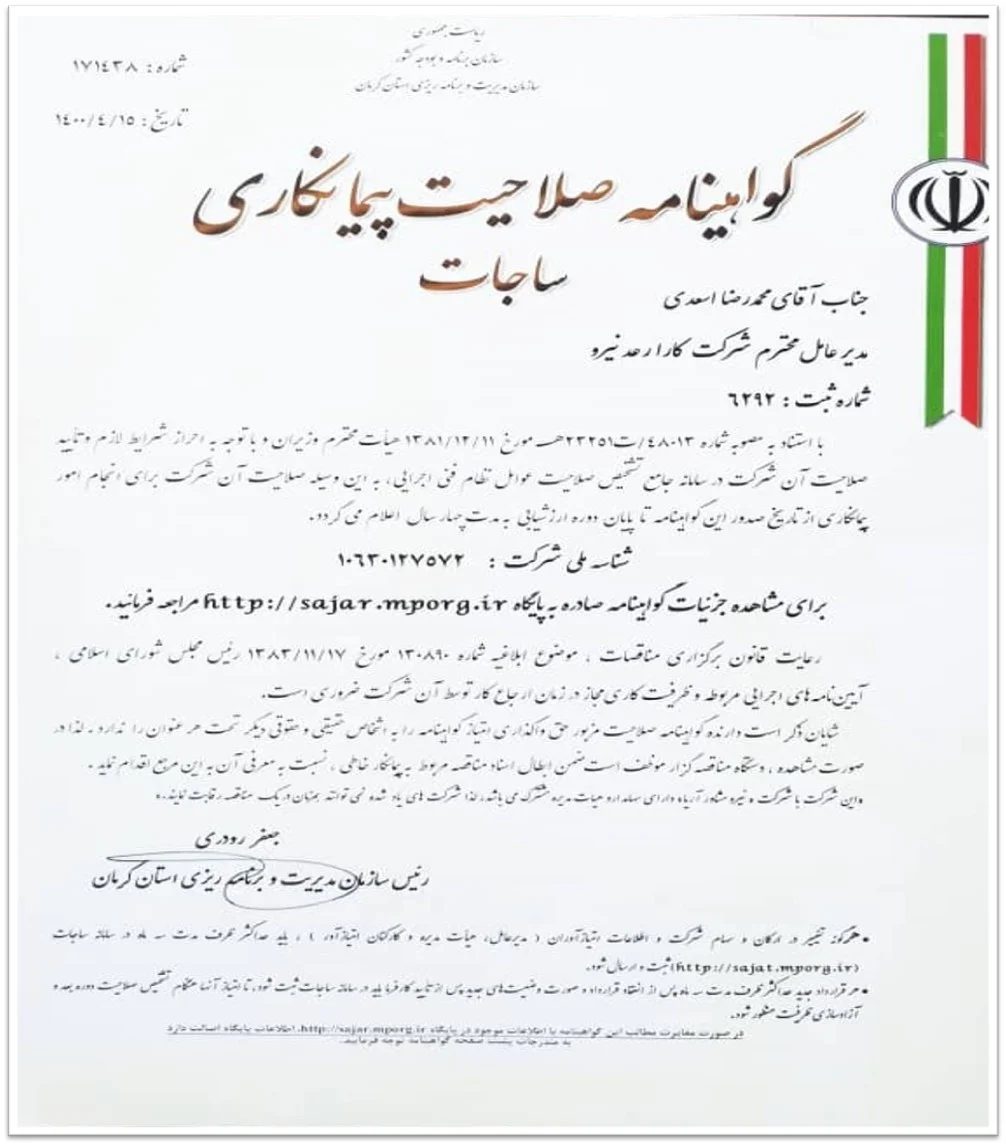 ☀️گواهینامه تایید صلاحیت پیمانکاری ساجات