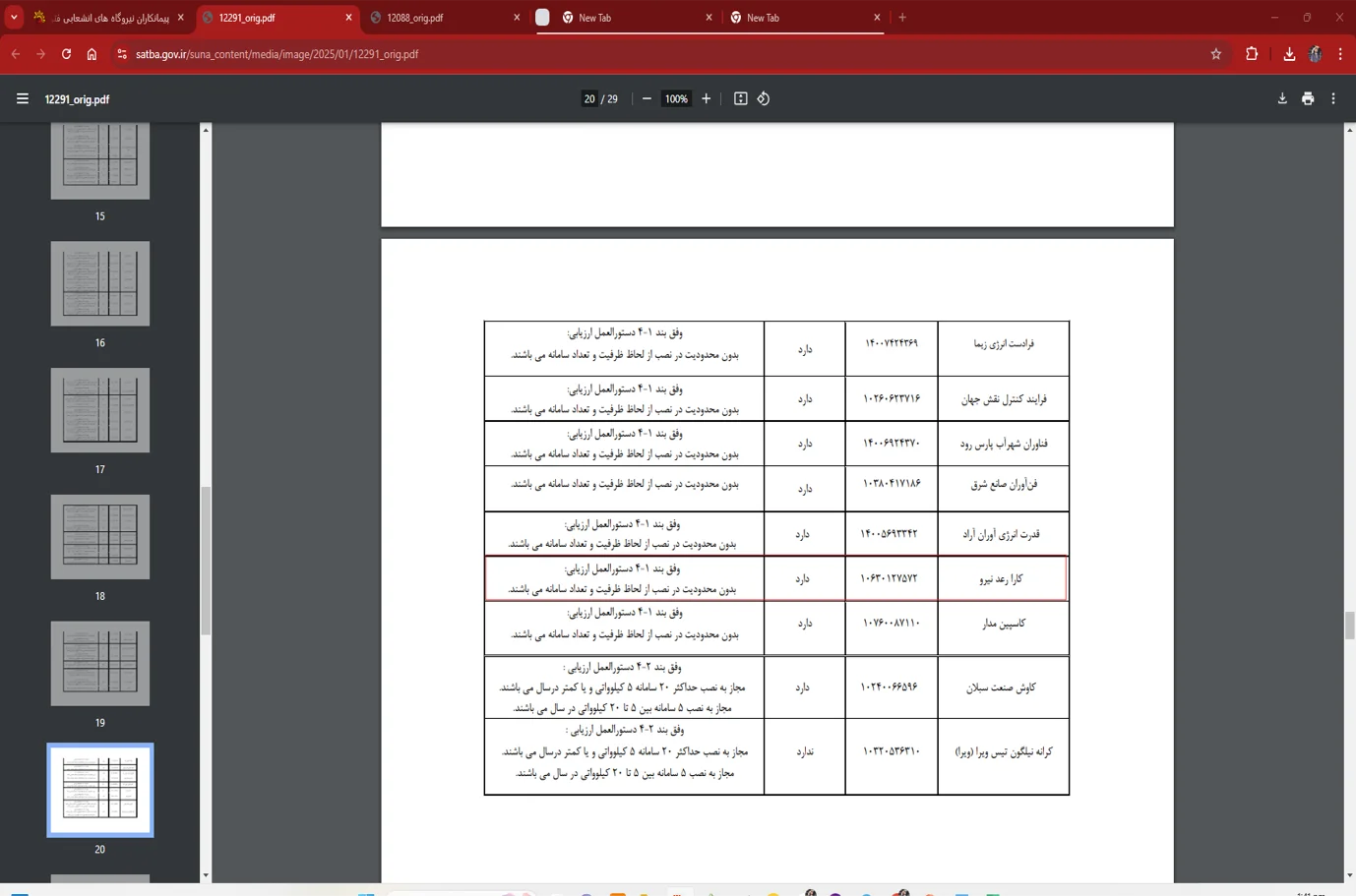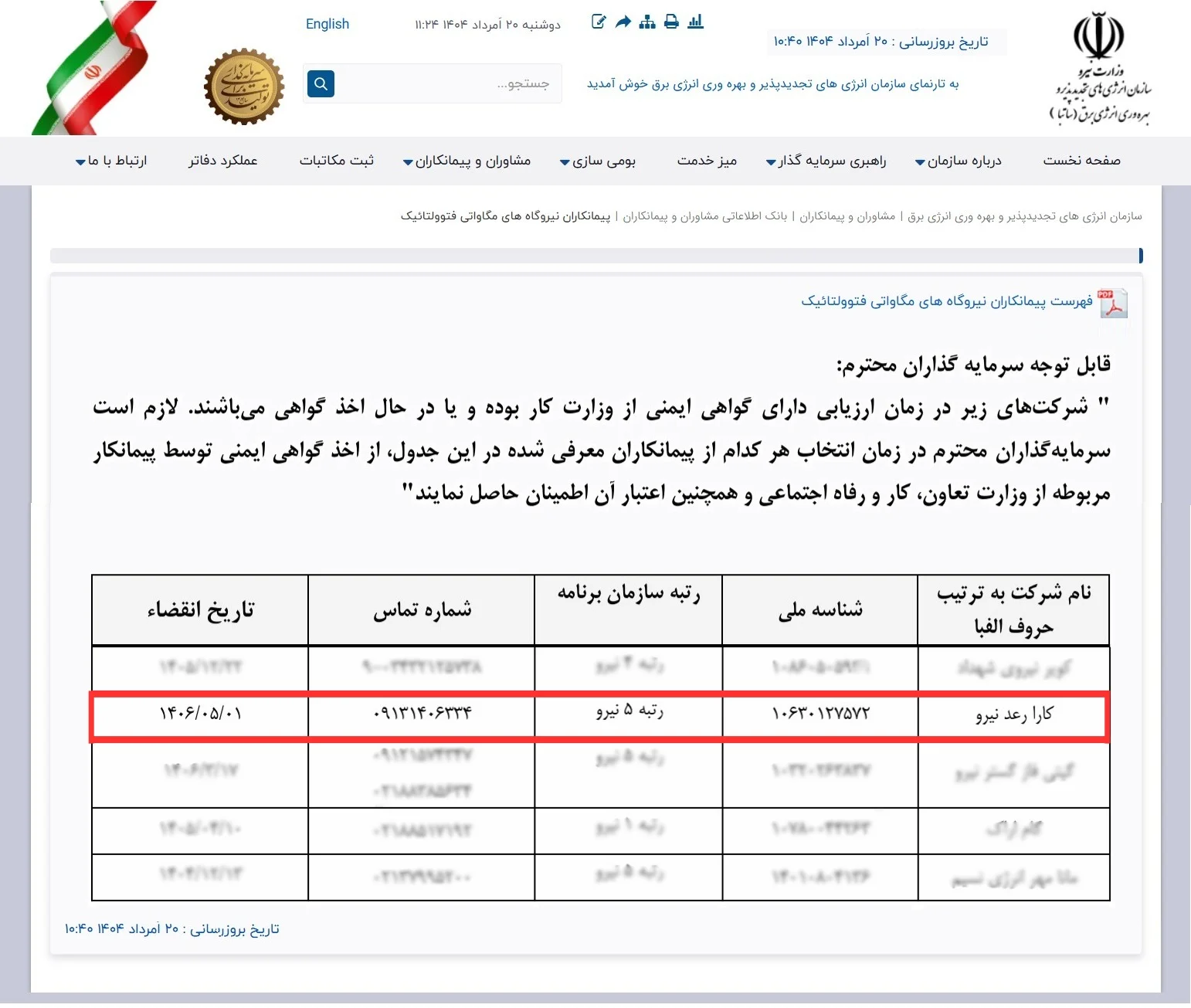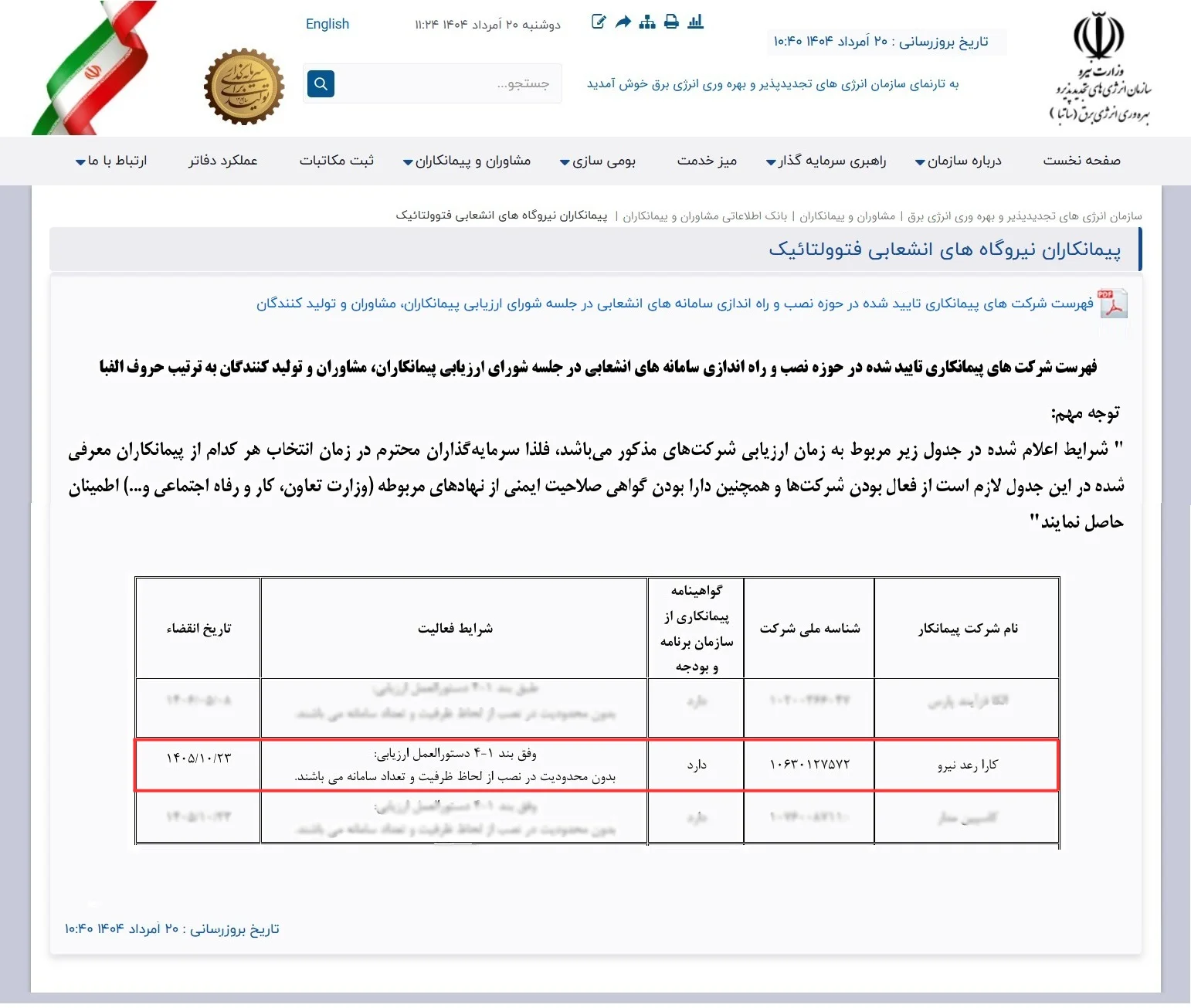 🔌مجوز پیمانکاران نیروگاه های انشعابی فتوولتائیک